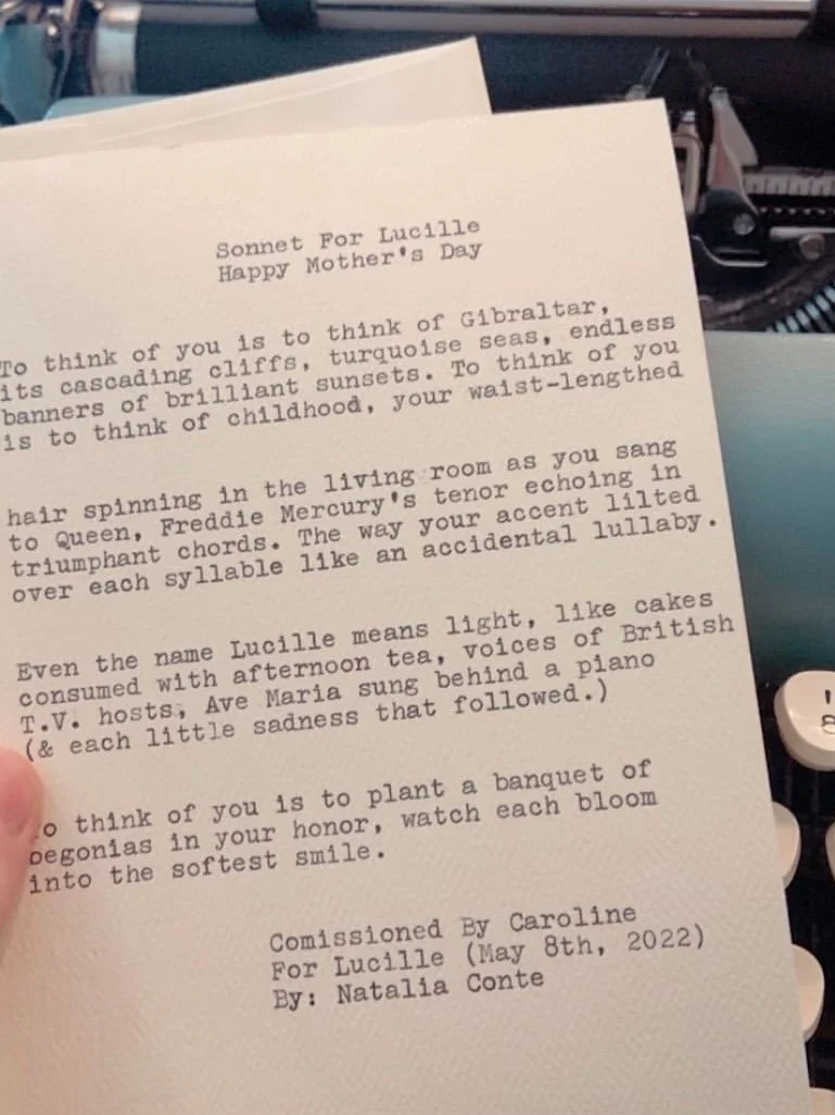 Mother’s Day Typewriter Poetry Event (Greenpoint, NY) 5/08/2022